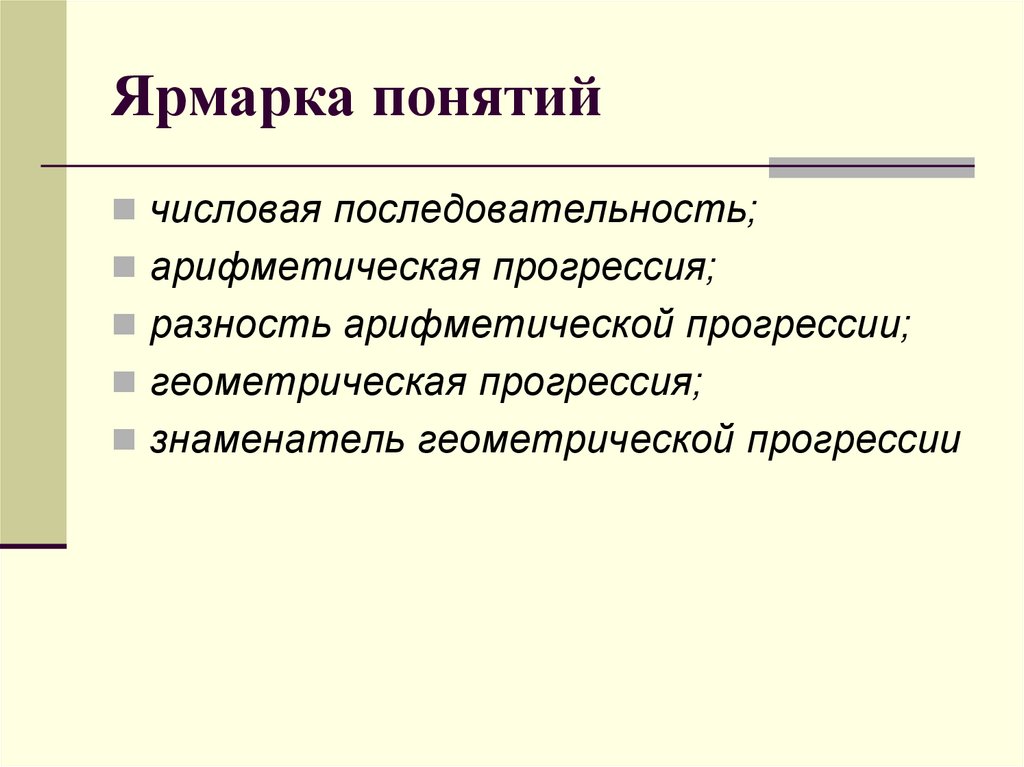 Ярмарка понятийчисловая последовательность;