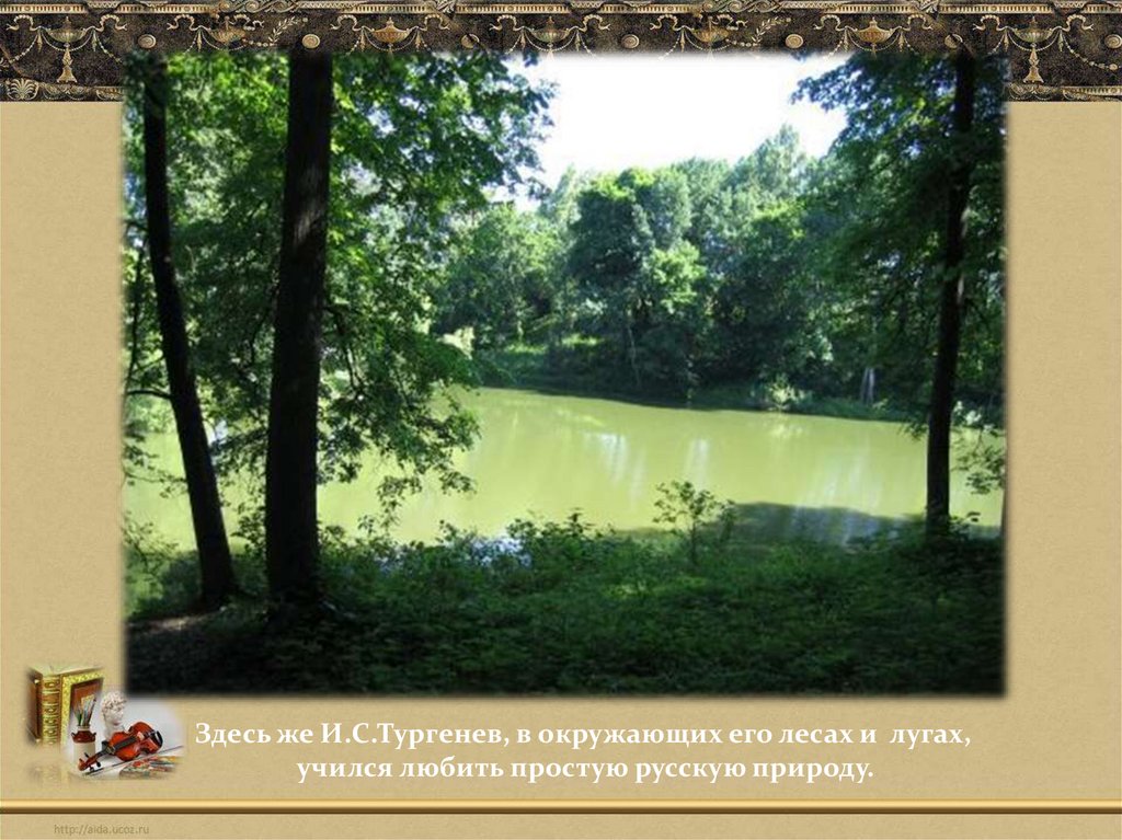 Здесь же И.С.Тургенев, в окружающих его лесах и лугах,учился любить простую русскую природу.