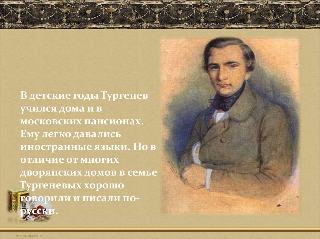 В детские годы Тургеневучился дома и в