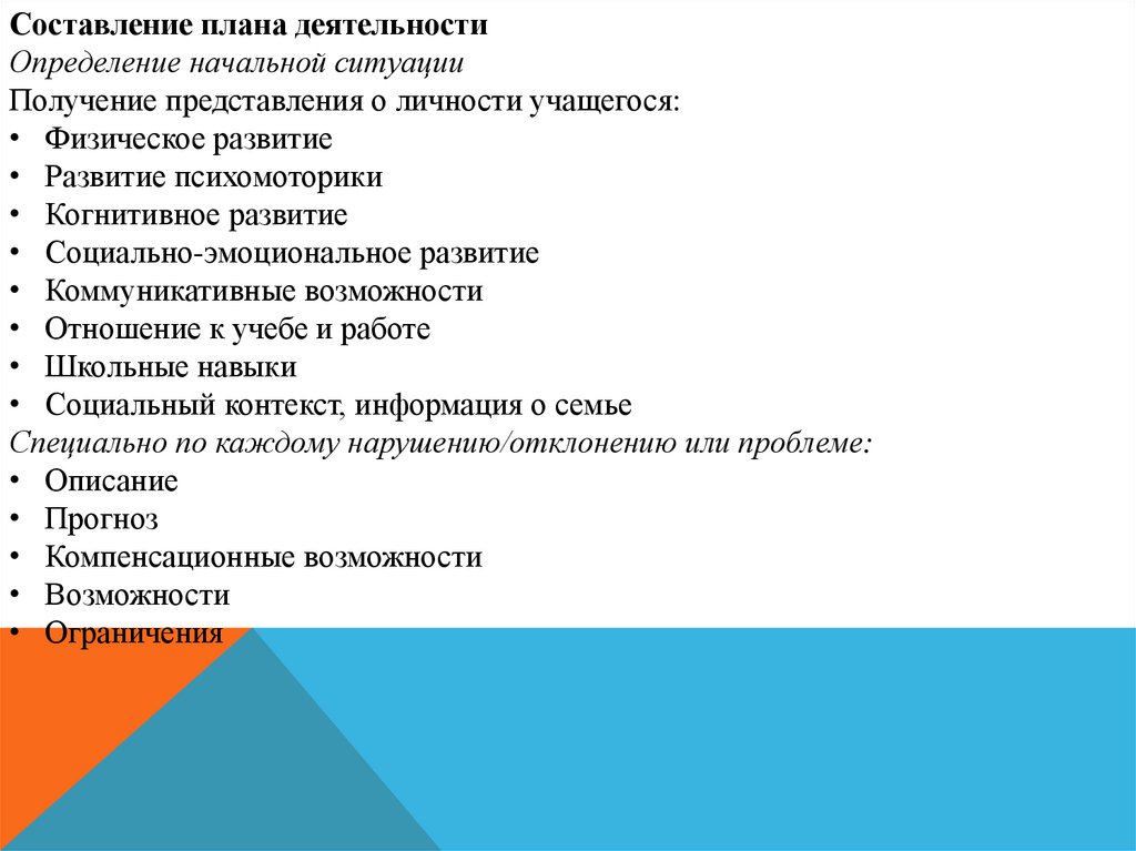 специального образования и плана