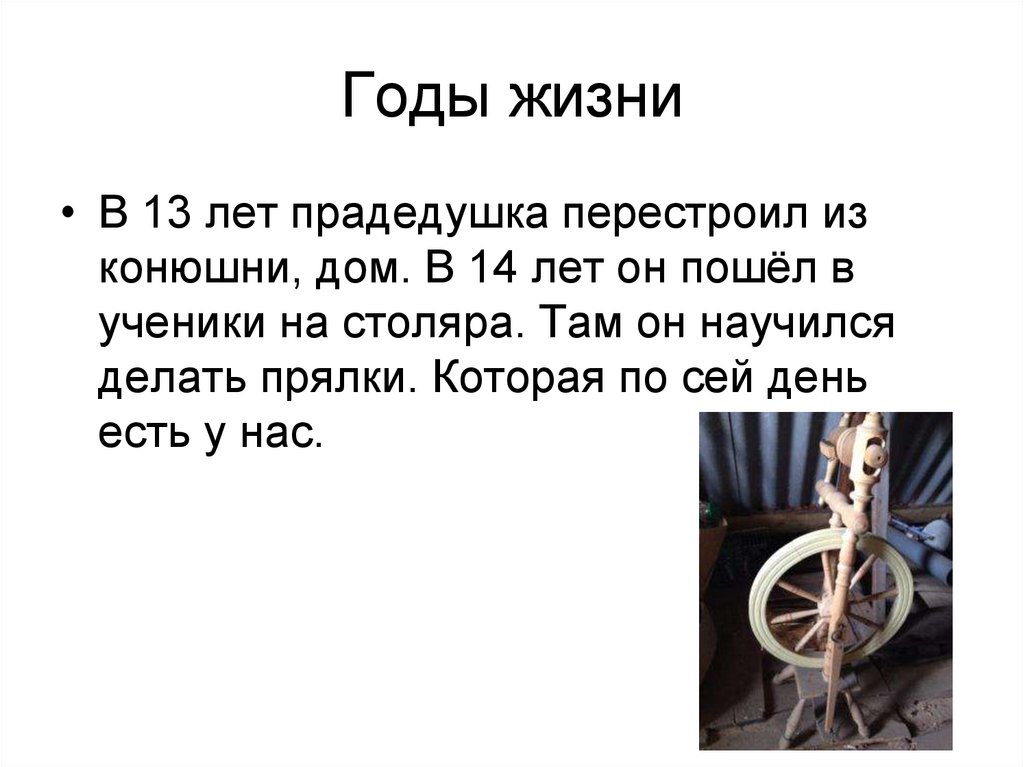 Годы жизни• В 13 лет прадедушка перестроил из