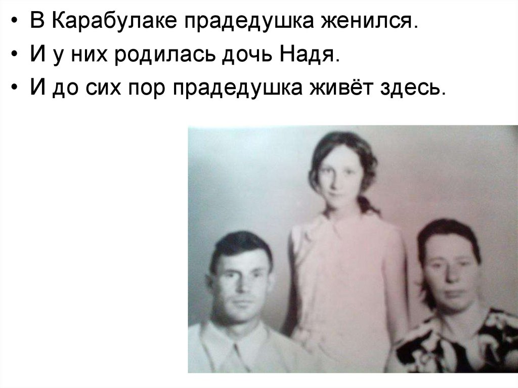 • В Карабулаке прадедушка женился.• И у них родилась дочь Надя.