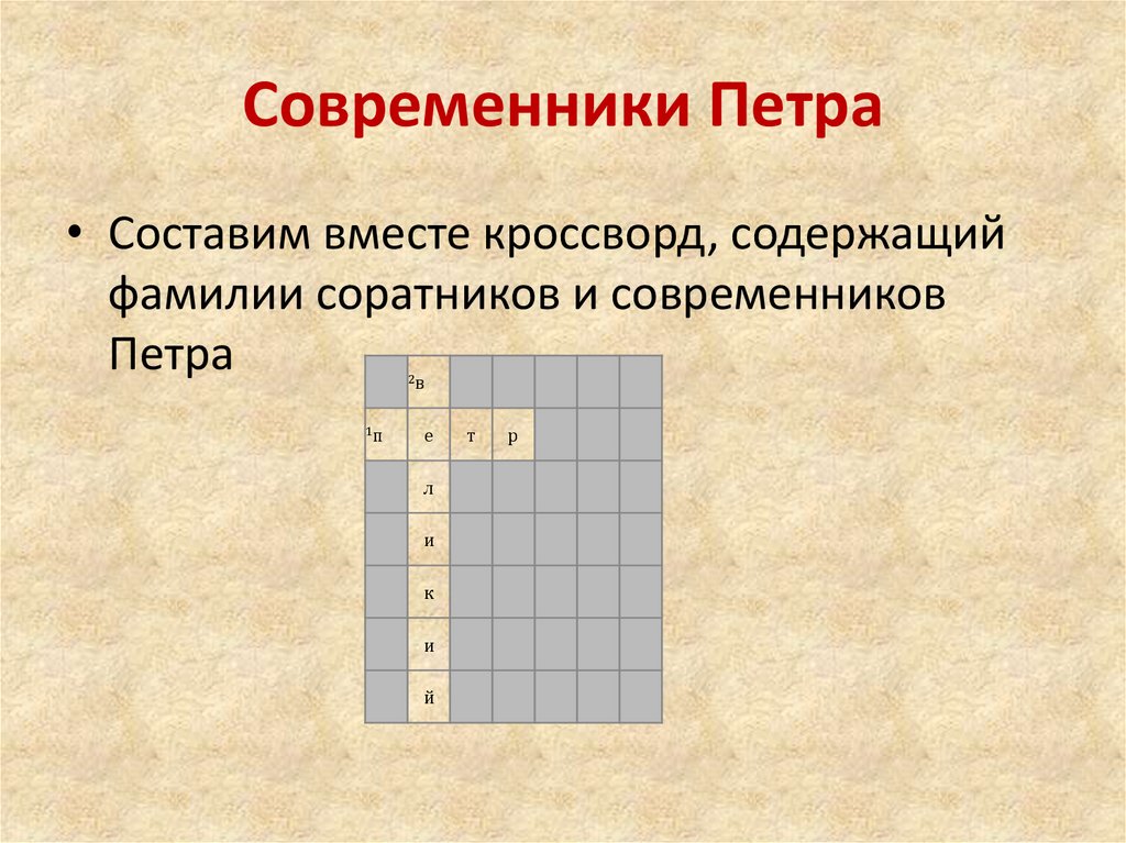 Современники Петра• Составим вместе кроссворд, содержащий