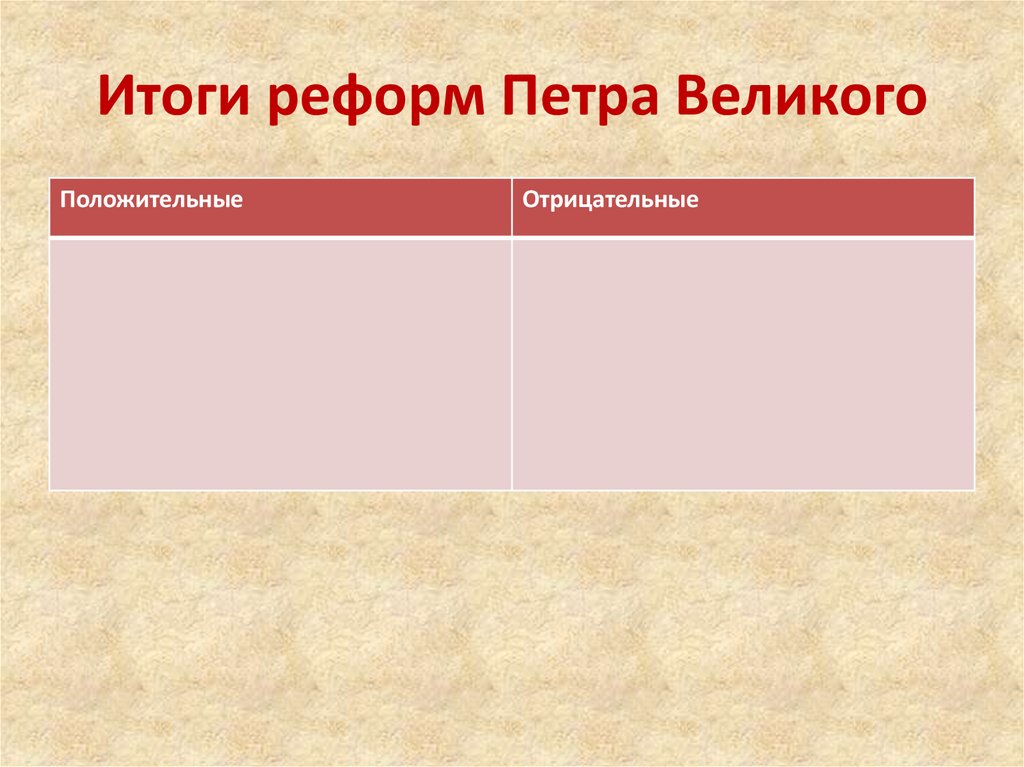 Итоги реформ Петра ВеликогоПоложительные