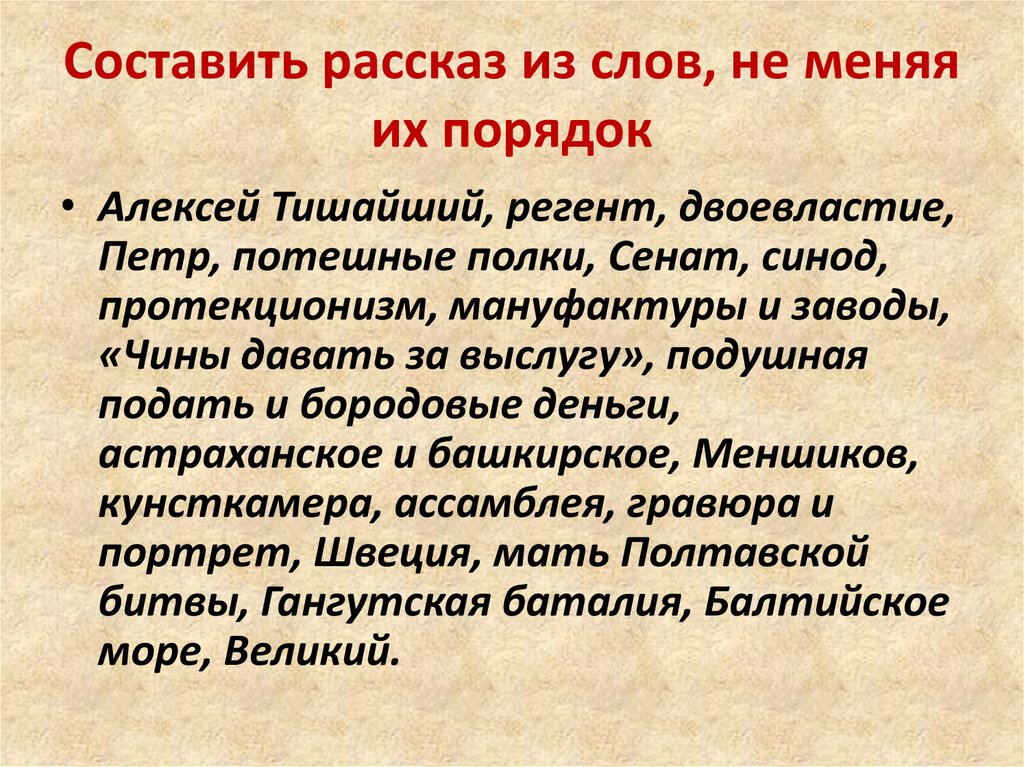 Составить рассказ из слов, не меняяих порядок