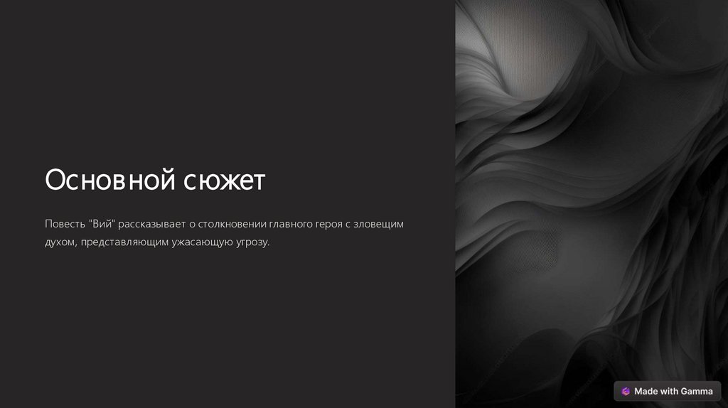 Основной сюжетПовесть "Вий" рассказывает о столкновении главного героя с зловещим