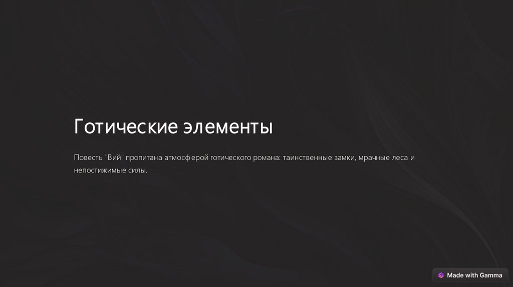 Готические элементыПовесть "Вий" пропитана атмосф ерой готического романа: таинственные замки, мрачные леса и