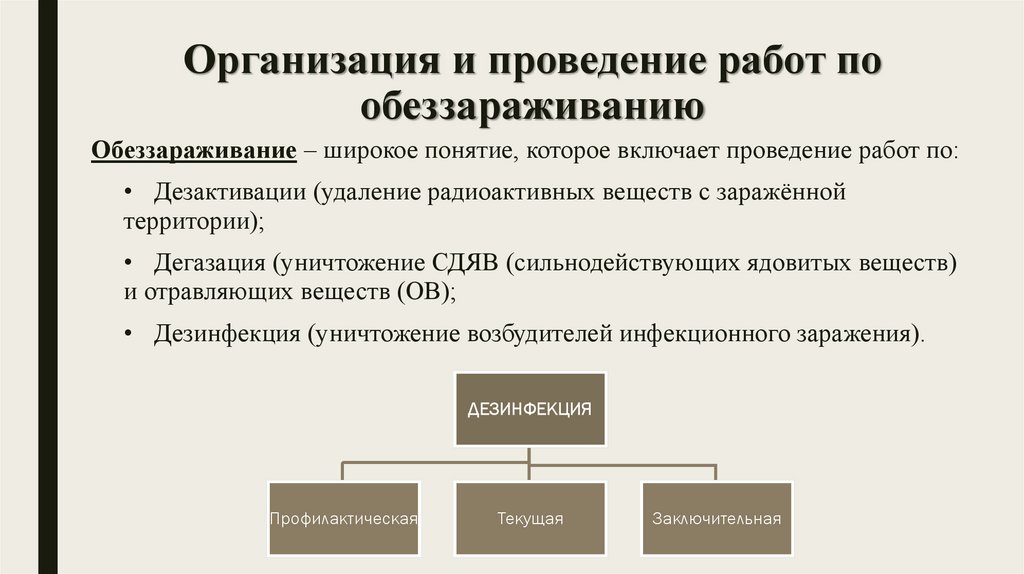 Организация и проведение работ пообеззараживанию