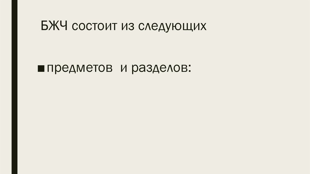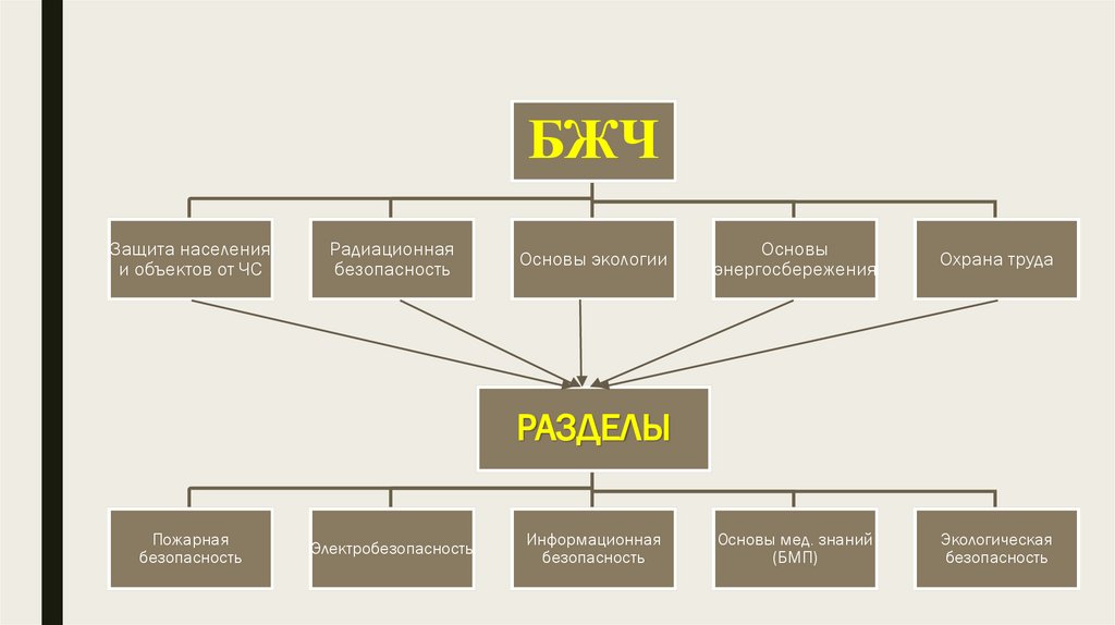 БЖЧ состоит из следующих■предметов и разделов: