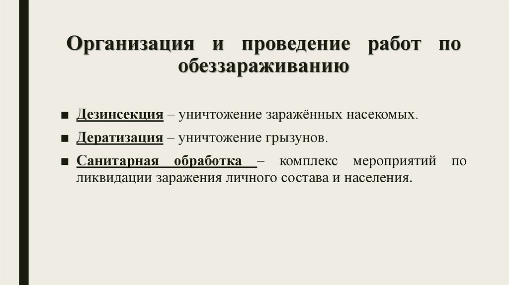• Дезинфекция (уничтожение возбудителей инфекционного заражения).