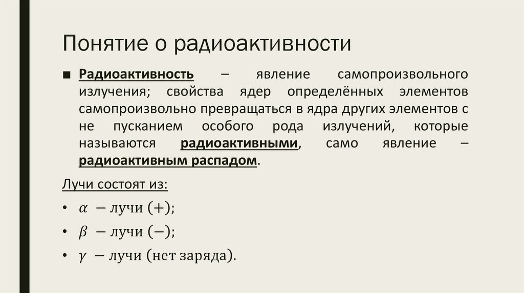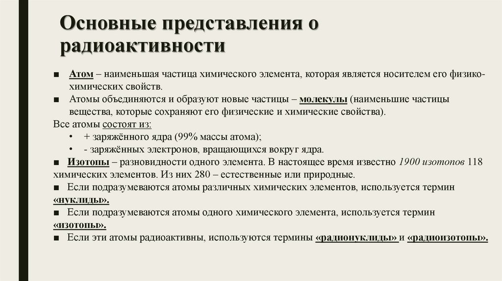 Основные представления орадиоактивности