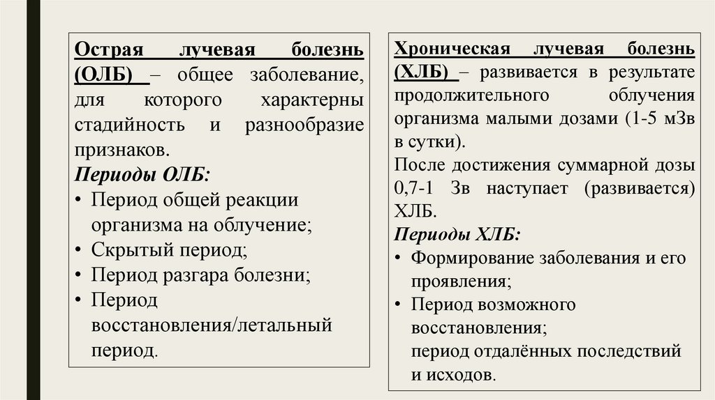 воздействия ионизирующих излучений.