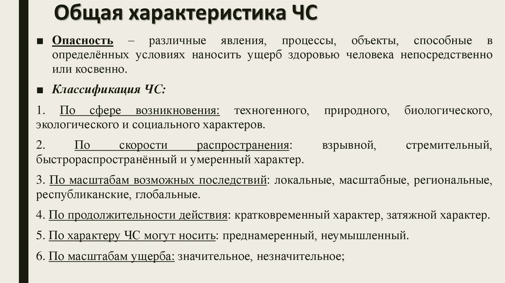 Общая характеристика ЧС■ Опасность – различные явления, процессы, объекты, способные в