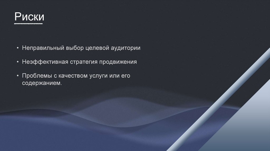 Риски• Неправильный выбор целевой аудитории