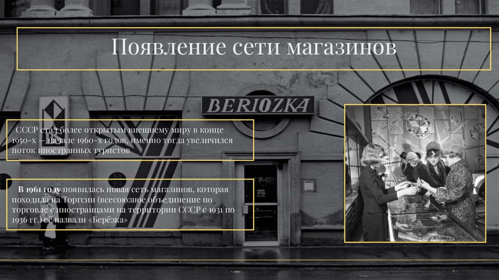 Появление сети магазиновСССР стал более открытым внешнему миру в конце
