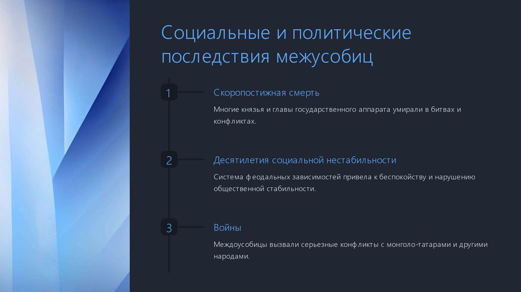 Социальные и политическиепоследствия межусобиц