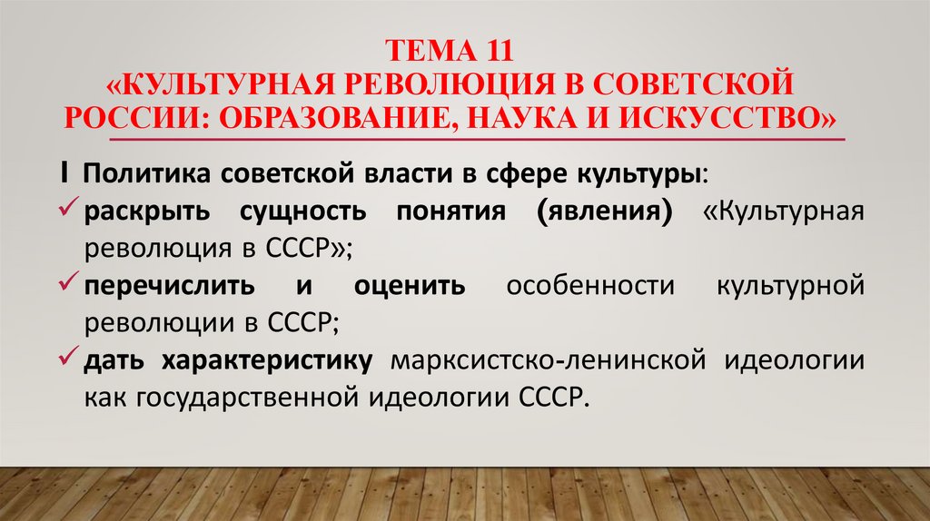 ТЕМА 11«КУЛЬТУРНАЯ РЕВОЛЮЦИЯ В СОВЕТСКОЙ