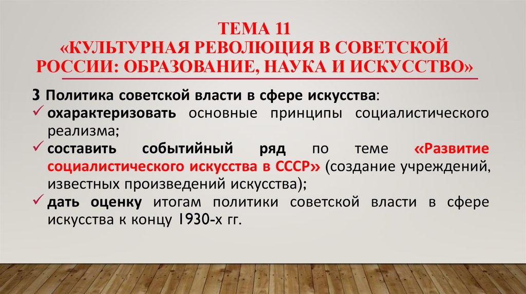 Культурная революция в советской России: образование, наука и искусство. Тема 11