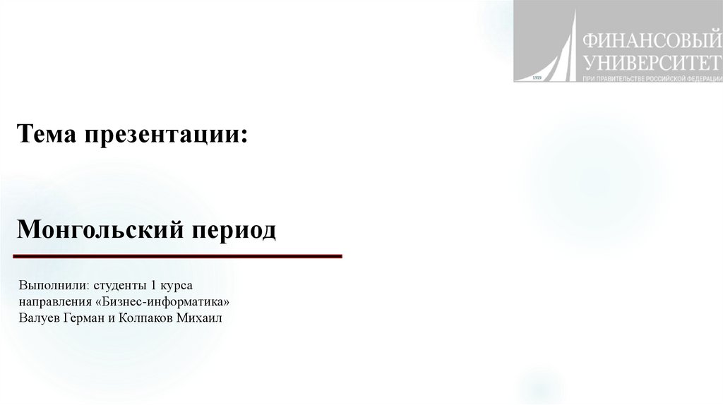 Тема презентации:Монгольский период