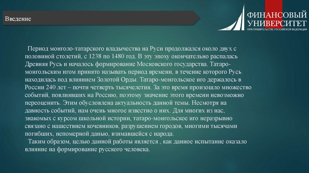 ВведениеПериод монголо-татарского владычества на Руси продолжался около двух с