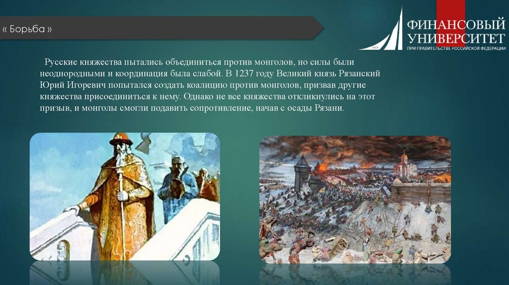 « Борьба »Русские княжества пытались объединиться против монголов, но силы были
