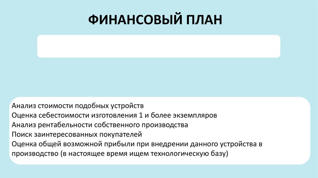 ФИНАНСОВЫЙ ПЛАНАнализ стоимости подобных устройств