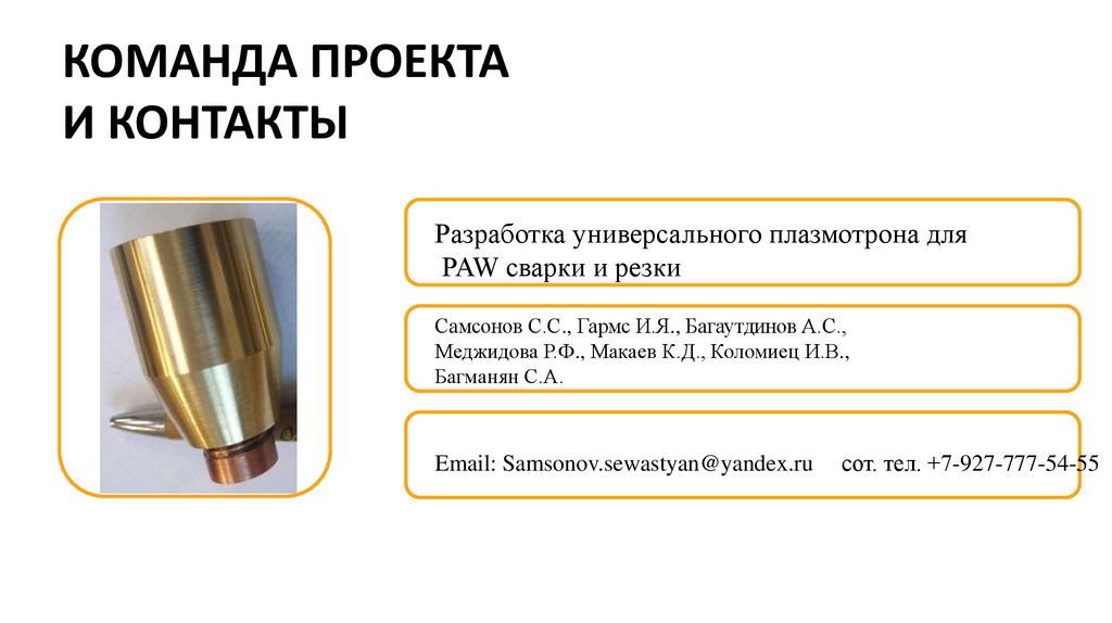 КОМАНДА ПРОЕКТАИ КОНТАКТЫ