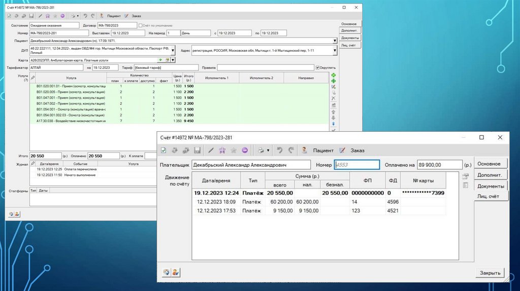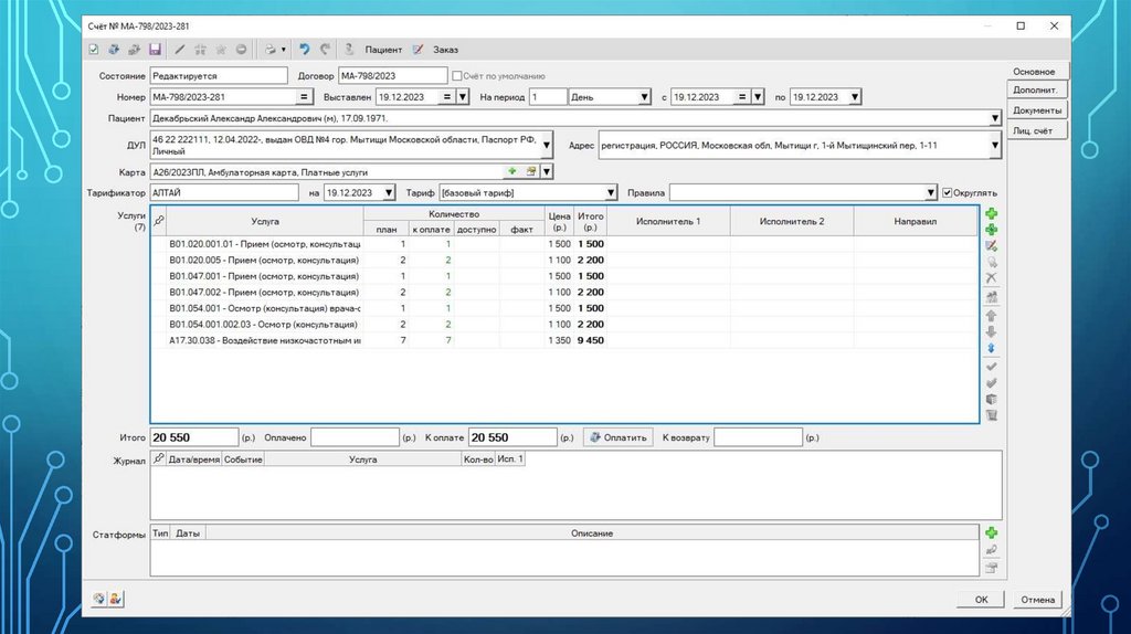 Функционал медицинской информационной системы предоставляется в рамках