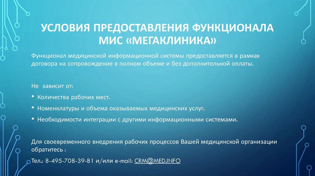 Тел.: 8-495-708-39-81 и/или e-mail: CRM@MED.INFO