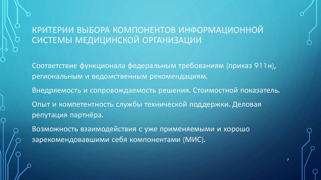КРИТЕРИИ ВЫБОРА КОМПОНЕНТОВ ИНФОРМАЦИОННОЙСИСТЕМЫ МЕДИЦИНСКОЙ ОРГАНИЗАЦИИ