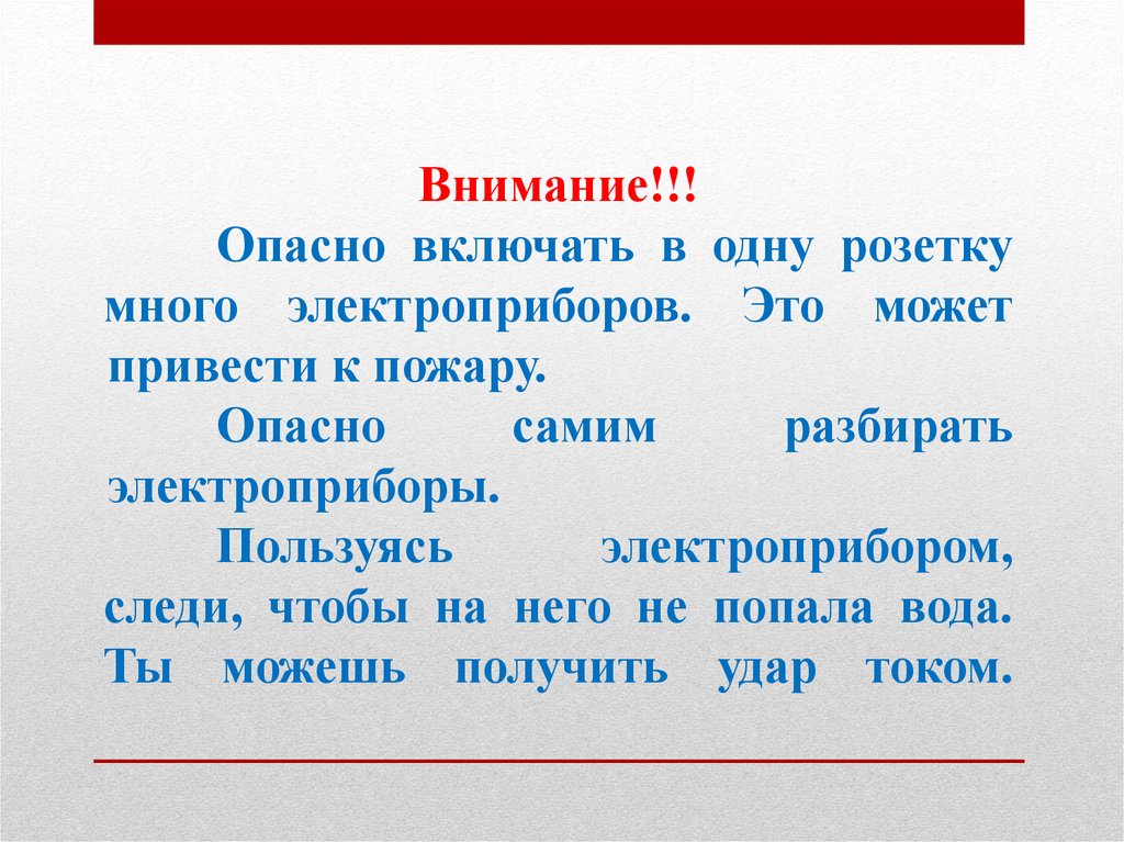 Внимание!!!Опасно включать в одну розетку