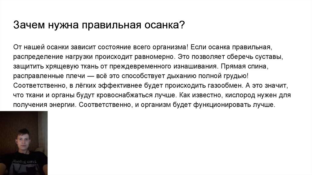 Зачем нужна правильная осанка?От нашей осанки зависит состояние всего организма! Если осанка правильная,