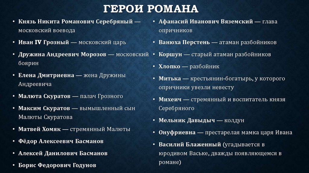 ГЕРОИ РОМАНА• Князь Никита Романович Серебряный —