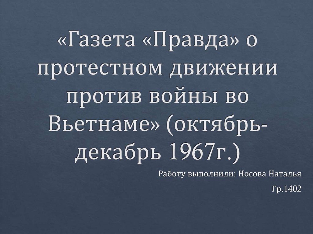 «Газета «Правда» о протестном движении против войны во Вьетнаме» (октябрь - декабрь 1967г.)