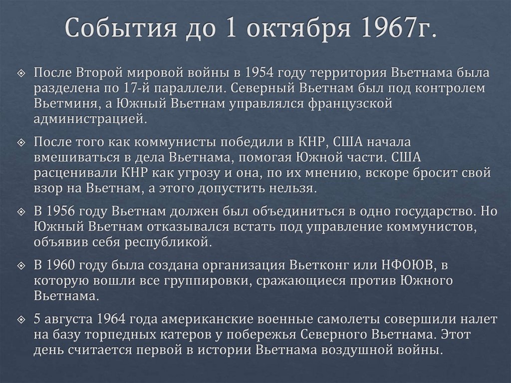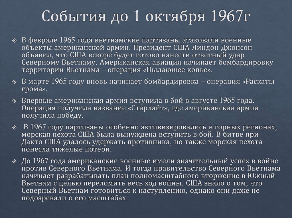 15.10-21.10 - проведение во всем мире «недели солидарности» в поддержкуВьетнама, критика действий США. В Вашингтоне начался антивоенный