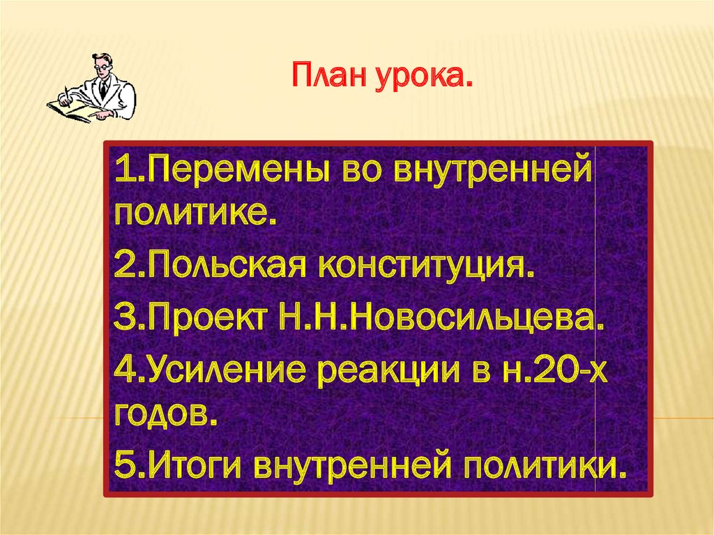 План урока.1.Перемены во внутренней