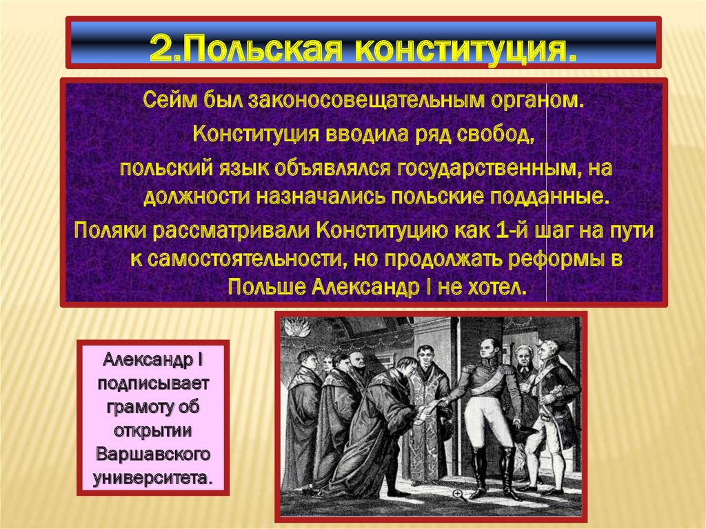 2.Польская конституция.Сейм был законосовещательным органом.