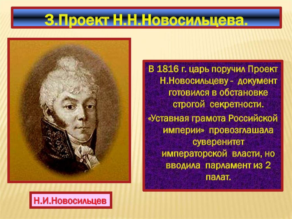 3.Проект Н.Н.Новосильцева.В 1816 г. царь поручил Проект