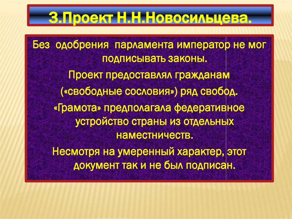 3.Проект Н.Н.Новосильцева.Без одобрения парламента император не мог