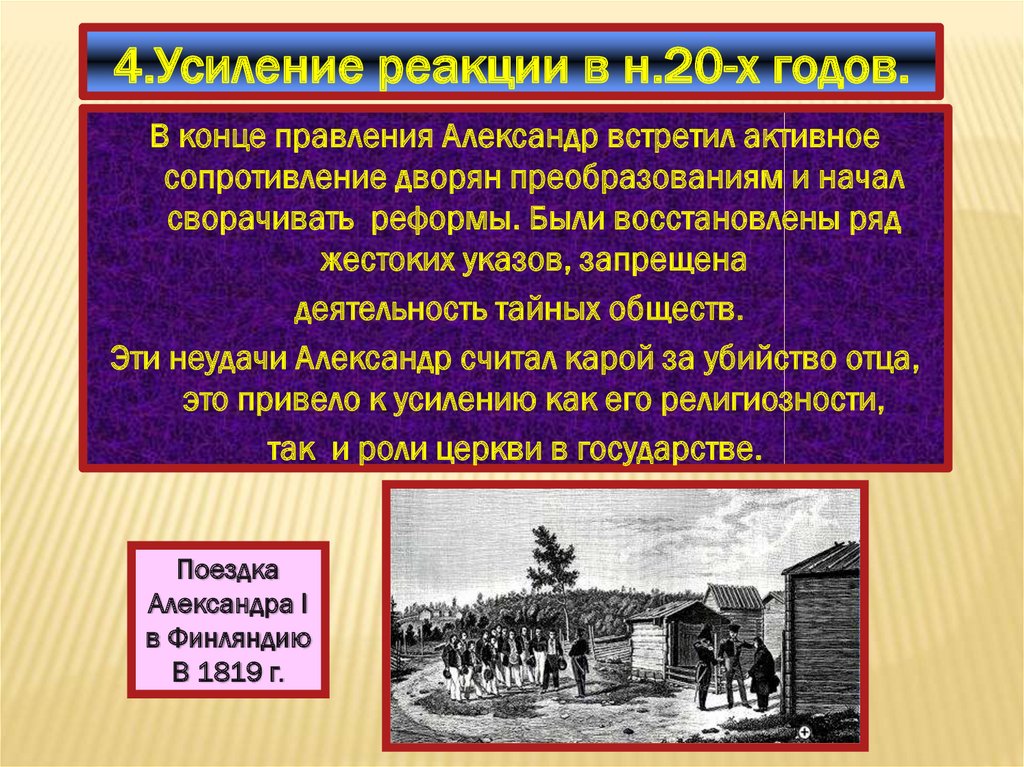 4.Усиление реакции в н.20-х годов.В конце правления Александр встретил активное