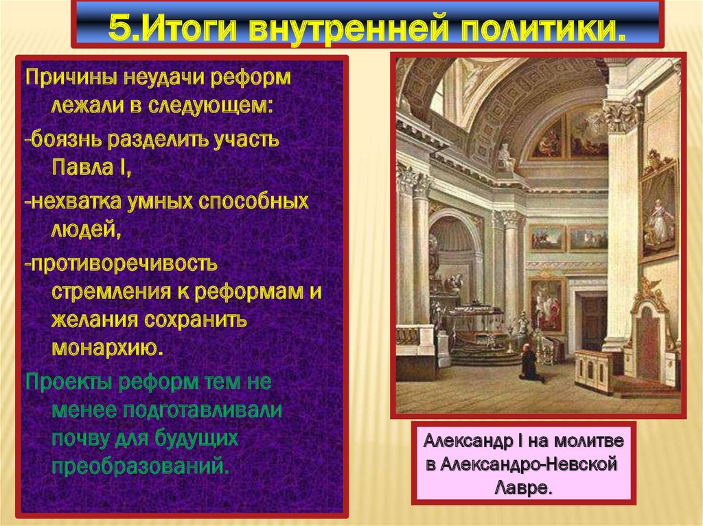 5.Итоги внутренней политики.Причины неудачи реформ