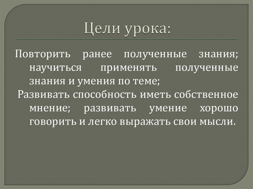 Повторить ранее полученные знания;научиться