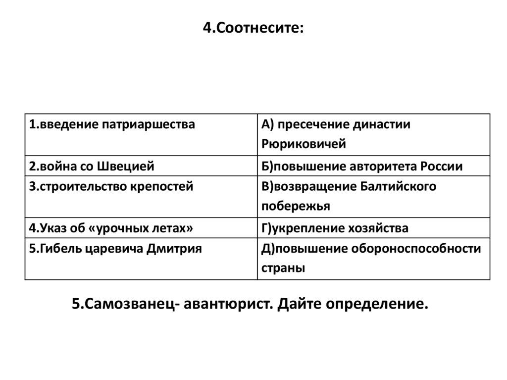 4.Соотнесите:1.введение патриаршества