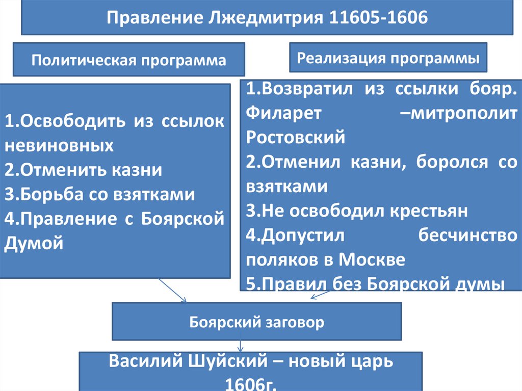 Правление Лжедмитрия 11605-1606Политическая программа