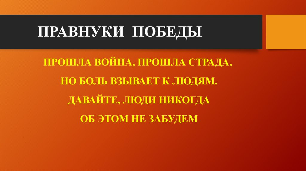 ПРАВНУКИ ПОБЕДЫПРОШЛА ВОЙНА, ПРОШЛА СТРАДА,