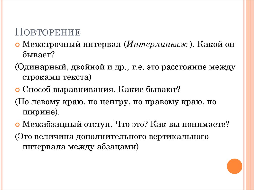 ПОВТОРЕНИЕМежстрочный интервал (Интерлиньяж ). Какой он