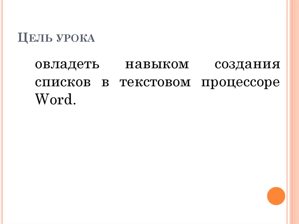 ОРГАНИЗАЦИЯ СПИСКОВВ WORD