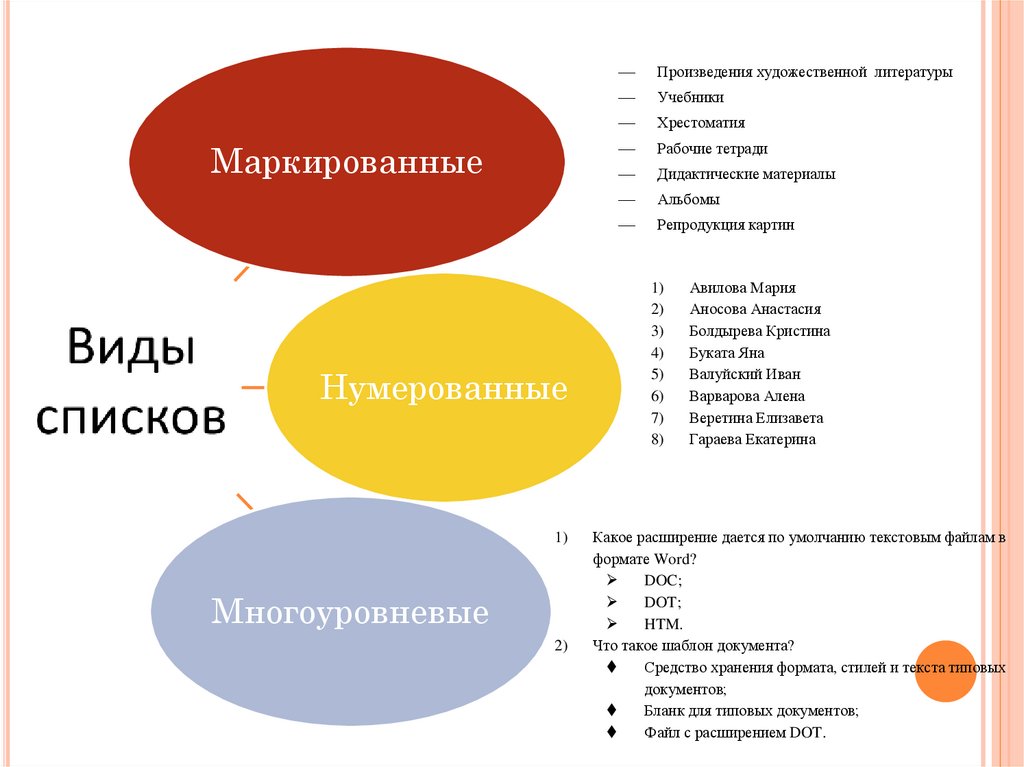 списков в текстовом процессоре