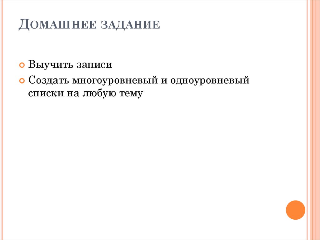 ДОМАШНЕЕ ЗАДАНИЕВыучить записи