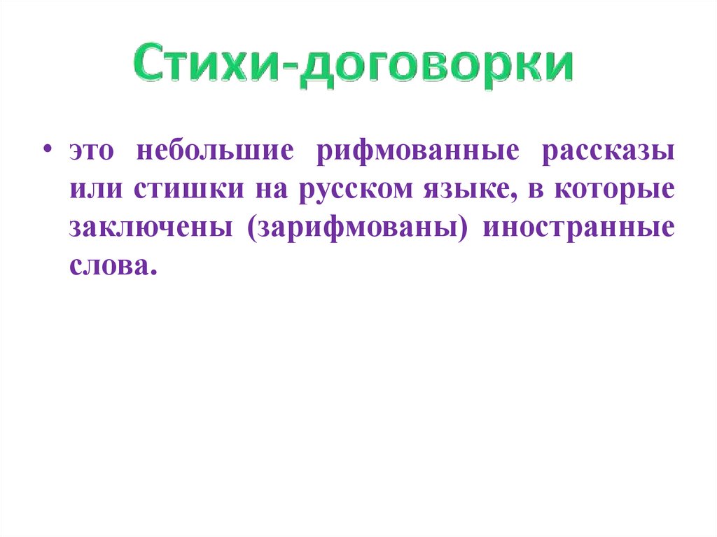 • это небольшие рифмованные рассказыили стишки на русском языке, в которые